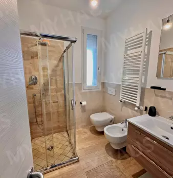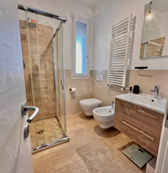 Rimini zona Residenziale di Miramare A soli 4 km da Riccione Appartamento Trilocale sito al piano primo di elegante palazzina signorile da 7 unità immobiliare dotata di ascensore. Ingresso su ampio openspace con cucina e salotto molto luminoso con...