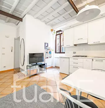 TUA RE Trastevere ad. (Piazza Trilussa) SPLENDIDO ed ampio BILOCALE con AFFACCI ESTERNI ALTI e luminosi, FINEMENTE RISTRUTTURATO con materiali DI PREGIO, soffitti alti con TRAVI A VISTA, ingresso, soggiorno con angolo cottura, camera matrimoniale,...