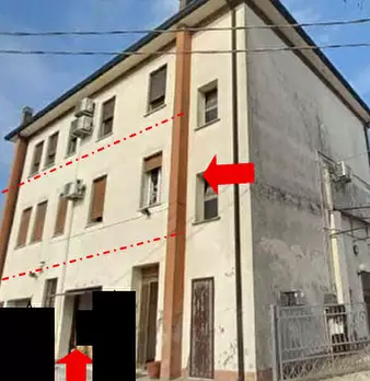 L'abitazione è situata al piano terra e primo di un fabbricato di tre unità immobiliari, in Comune di Taglio di Po PAT (Rovigo), frazione Mazzorno Destro, via Marchi, 4. Essa è costituita al piano terra da: ingresso; al piano primo da: disimpegno,...