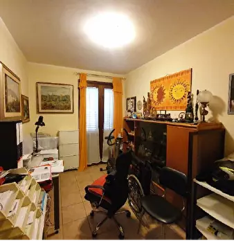 La casa ha uno spazioso ingresso, disimpegno, salone doppio luminoso con finestre e due porte finestra verso il balcone (comune alla cucina), ripostiglio, cucina con accesso al balcone, bagno con spazio lavanderia e finestra, corridoio, camera sin...