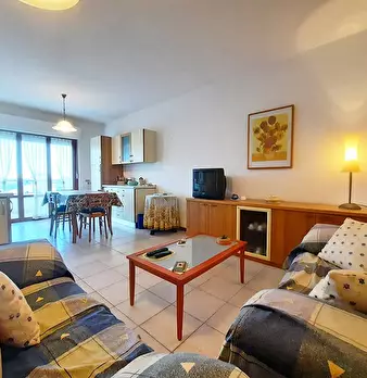 L'abitazione è composta da un luminoso soggiorno, perfetto per rilassarsi e trascorrere piacevoli momenti in compagnia, angolo cottura, equipaggiato, due accoglienti camere da letto e un bagno completo di tutti i sanitari. Le tapparelle sono elett...