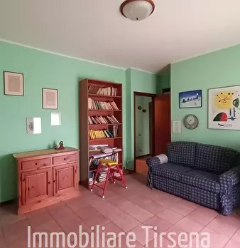 Appartamento con ascensore di mq 130 circa posto al piano secondo composto da ingresso, sala con camino e terrazza, cucina con balcone, due camere letto e balcone, uno studio e due bagni. Al piano terra locale uso garage di mq 18 e un magazzino. A...