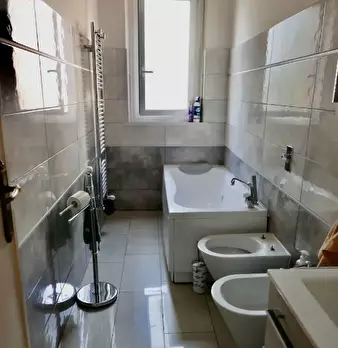 Alloggio al piano terzo (4° f.t.) composto di ingresso, disimpegno, 2 servizi, soggiorno, 4 camere, cucina e due balconi. Cantina al piano terreno. Le foto allegate sono a scopo puramente illustrativo e potrebbero non essere esaustive. l'esatte...