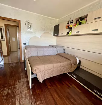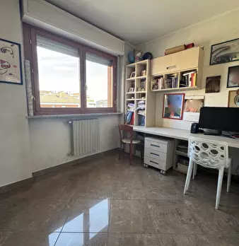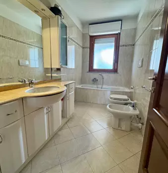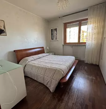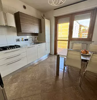 Adiacenze di via Guido Reni in edificio di medio livello signorile con grande parco comune, area giochi e vista sulle montagne. Offriamo un vasto appartamento formato da ingresso, soggiorno, due camere, cucina abitabile, doppi servizi, due ampi te...
