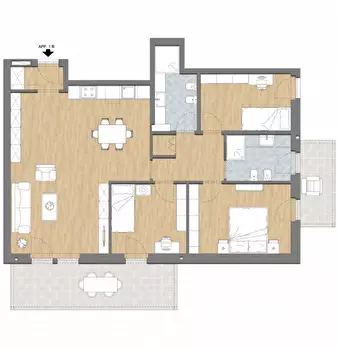 CLES in fase di costruzione con consegna prevista a Luglio 2027, vendiamo ultimo appartamento 3 stanze sito al primo piano di 86 metri quadri composto da: cucina con terrazzo,soggiorno con grande terrazzo da 40 metri quadri, 2 bagni finestrati, st...