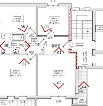 Abitazione composta da cucina/soggiorno/pranzo, corridoio, due camere, due bagni e annessa corte esclusiva sulla quale insistono opere da demolire; oltre garage, cantina e magazzino al piano primo sottostrada. Forno e area scoperta pertinenziali i...