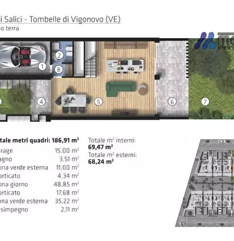 Villa Vigonovo €. 324.000 Fotovoltaico 6 Kw con inverte, mq.140 calpestabili Cl A4 "Residenze ai Salici " Porzioni centrali €. 324.000 Superfici: Calpestabile mq. 133 Commerciali mq. 182 Totali mq. 230 Un nuovo modo di abitare dove il design...