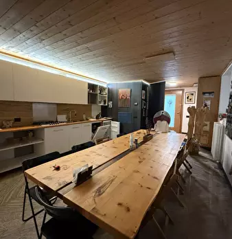 Attualmente locale commerciale, libero, in palazzina di 4 unità al piano rialzato. Può diventare un appartamento con zona giorno di 40 mq, 2 camere, bagno e garage doppio. Necessita di cambio di destinazione d’uso e ristrutturazione (costo di rist...