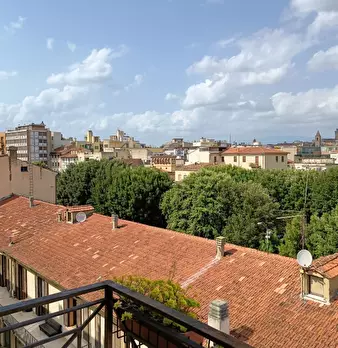 Ad un passo dalla stazione F.S. di Arezzo vendesi splendido attico panoramico con 3 camere matrimoniali, sala con camino, cucina, 2 bagni, 2 balconi + lavanderia; ascensore, garage e posto auto di proprietà. A livello supeiore, super-attico angol...