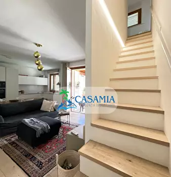 Appignano del Tronto (AP) - appartamento distribuito su due livelli al terzo piano con ascensore, garage privato (22mq) e area urbana di mq 47. L'abitazione è rifinita in ogni dettaglio con materiali di qualità, luminosissima, con panorama sulle c...
