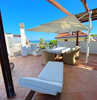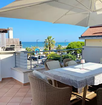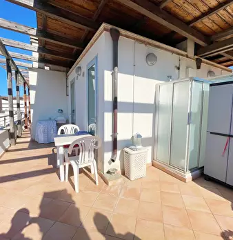 Zona Mare, lungomare prima fila, Grottammare, vendesi stupendo attico con terrazzo dislocato su due livelli. Al primo e penultimo piano troviamo la zona notte con due camere e bagno, segue al piano superiore la zona giorno collegata da comoda scal...