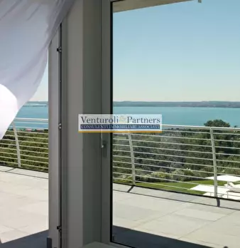 Padenghe sul Garda, in contesto prestigioso e riservato, attico dotato di domotica e finiture lussuose, in posizione dominante il lago. Secondo e ultimo piano serviti da acensore, accesso su ampia e luminosa zona giorno totalmente con vetrata vist...