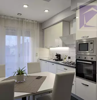 Ultimo attico con terrazzo di 100 mq circa ed una profondita' di otto ml, tre camere da letto due bagni ed una zona giorno di cinquanta mq garage e due posti auto di propieta'.Edificato in classa A4 dotato di impianto fotovoltaico e pompa di calor...