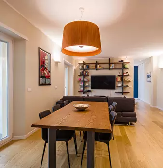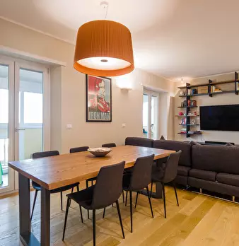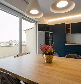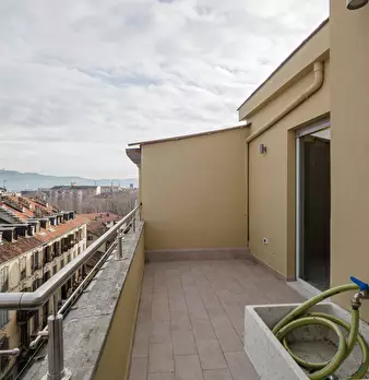L'ampio ingresso conduce ad un elegante soggiorno, arredato con gusto e dotato di grandi finestre che regalano una splendida vista sulla città. La cucina dispone di spazio sufficiente per ospitare un tavolo da pranzo; inoltre è presente un'ampia p...