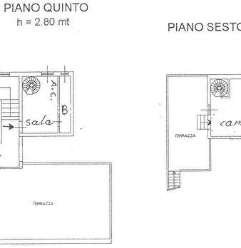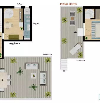 Bivano al piano attico su due livelli, con ampia terrazza a livello e altra piccola terazza nella zona notte