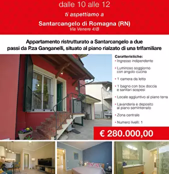 SANTARCANGELO DI ROMAGNA – CENTROA pochi passi da Piazza Ganganelli, nel cuore del paese, proponiamo in vendita appartamento completamente ristrutturato, situato al piano rialzato di una graziosa trifamiliare.La soluzione, dotata di ingresso indip...