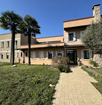 COMPOSIZIONE: Capannone ad uso artigianale, con piacevole e curato ingresso sul fronte del fabbricato e ampia area scoperta sviluppata sul retro. L'area direzionale presenta due uffici, bagni e ripostiglio, idonea zona filtro la separa dal labora...