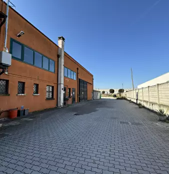 Capannone libero su 4 lati, alto 8,5mt diviso in due campate. Portoni a raso su tre lati. Blindosbarre sul perimetro, anello antincendio. Uffici attualmente mq 200 sviluppabili fino a 600mq. Riscaldamento interno. Area esterna di manovra con do...