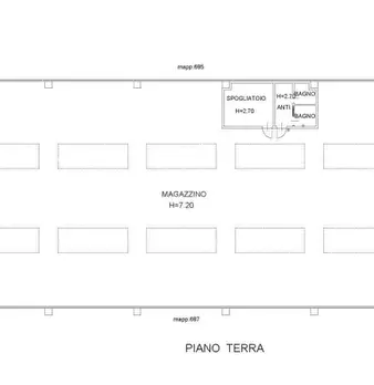 Capannone industriale con carroponti diviso in due unità. Entrambe le unità hanno un'altezza di 8mt. La prima unità è di 7000mq con 2 carroponti rispettivamente da 10t e 15t della ditta DEMAG. Il secondo ad uso magazzino con portoni a libro di 4mt...