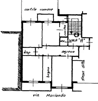 Appartamento al piano terzo, composto da 4 vani oltre servizi e cantina.
