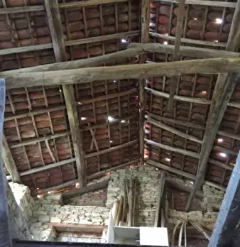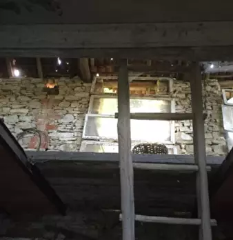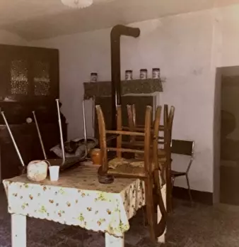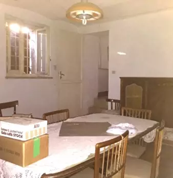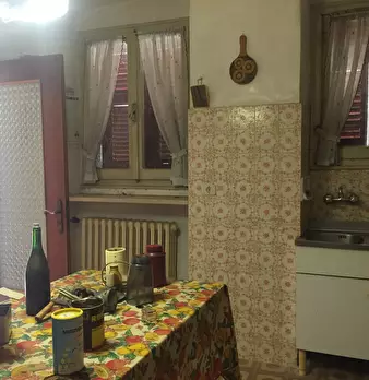 Casa indipendente su tre lati composta al piano terra da locale di sgombero, cucina, servizi con scala interna che porta al piano primo dove ci sono 3 camere. Ulteriore fabbricato composto da fienile e magazzino.