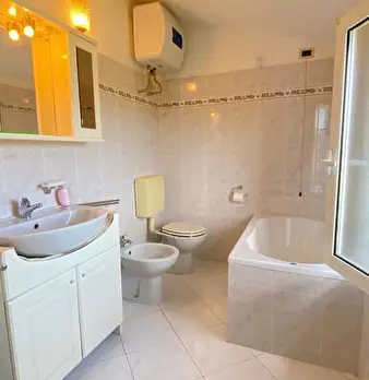 Villino indipendente su due livelli: a piano terra soggiorno, cucina, camera e bagno. Al primo piano mansardato camera e balcone. Ampio giardino recintato.