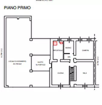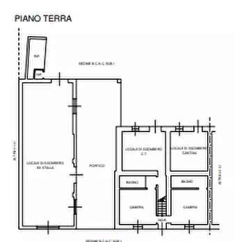 Fabbricato disposto su 3 piani f.t. parzialmente ristrutturato con locali accessori e cortile pertinenziale di circa mq.1000. Il piano terra è composto da ingresso, due camere, due bagni, locale sgombero uso c.t., locale sgombero uso cantina, loca...