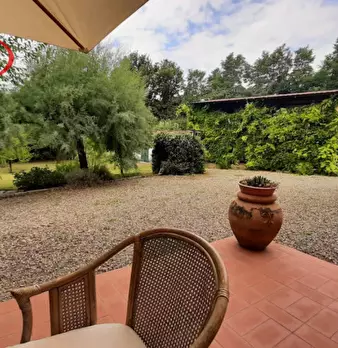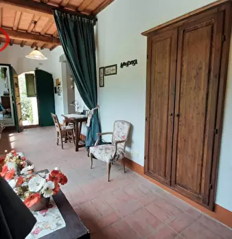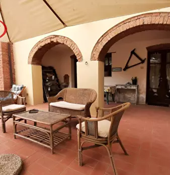 Laterina, colonica ristrutturata in perfetto stile toscano, con 1600 mq di giardino e composta da tre appartamenti disposti su tre livelli: - Al piano terra, appartamento di 80 mq composto da cucina, sala pranzo, salotto, bagno con box doccia e ca...