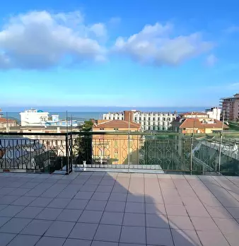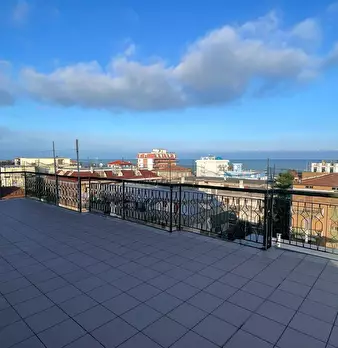 Attico al Piano Quinto servito da ascensore, delle dimensioni di 76 mq circa, composto da ingresso su soggiorno, cucina solo cottura, due camere da letto matrimoniali e bagno finestrato con doccia, oltre splendida terrazza vista mare di 100 mq. ci...