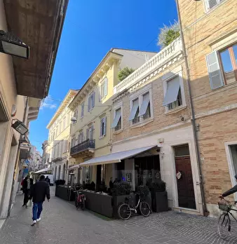 Appartamento di 141 mq coperti, disposto su due livelli, posto all’ultimo piano di uno dei palazzi storici più prestigiosi di San Benedetto del Tronto, lungo la centralissima passeggiata. L’ingresso si apre al secondo piano di circa 100 mq, con un...