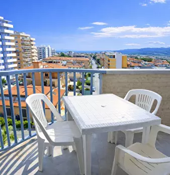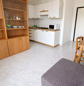 Appartamento a soli 80 mt dalla spiaggia, delle dimensioni di 36 mq circa, posizionato al piano sesto con ascensore , composto da un unico ampio vano dove con degli arredi è stato ricavato un soggiorno con angolo cottura, camera da letto, bagno co...