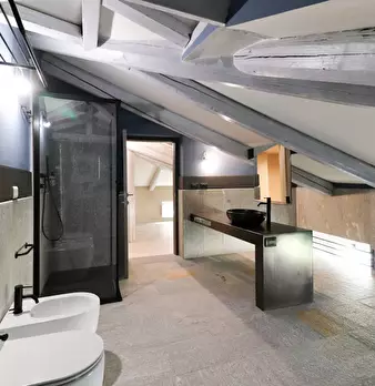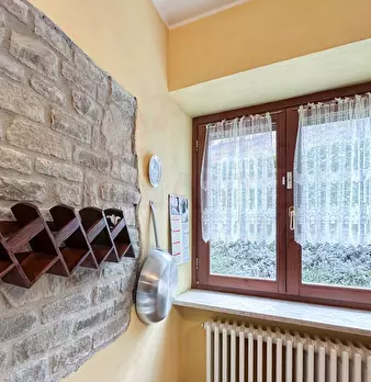 Fabbricato residenziale su due piani fuori terra oltre sottotetto. Struttura portante in muratura di pietra. Solai di orizzontamento tra piano terra e primo realizzati in mattone pieno sabbiato a vista. Serramenti esterni in legno con vetrocamera ...