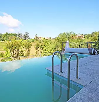 - PALAZZAGO _ GROMLONGO Prestigiosa ed elegante villa singola di mq 470 dislocata su 3 livelli dotata di 1.500 mq di giardino con piscina e mq 50 di autorimessa doppia. Immobile situato in posizione collinare e panoramica con splendida vista ape...