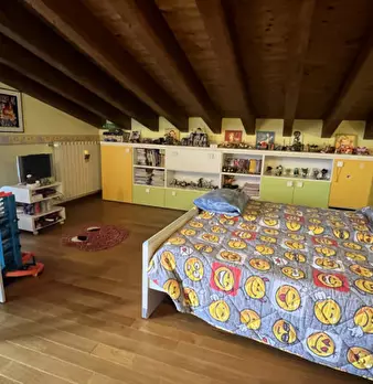 In recente palazzina del 2005 con sole otto unità abitative e con ingressi semi-indipendenti, disponiamo di un ampio appartamento posto al primo piano e disposto su due livelli abitativi per un totale di circa 130 mq. All'ingresso troviamo un amp...