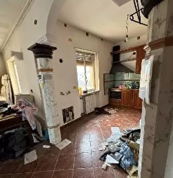 Fabbricato di civile abitazione elevato a tre piani fuori terra oltre al piano interrato entrostante area cortilizia (Ente Urbano) composto al primo piano dalla zona giorno con la cucina, soggiorno e un balcone parzialmente chiuso da una piccola v...
