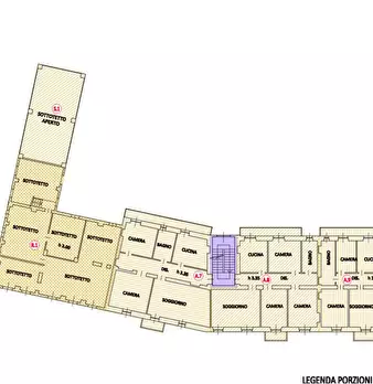 Alloggio di civile abitazione, al piano terzo f.t. composto da ingresso su corridoio/tinello, cucina aperta, due camere e bagno, con autorimessa al piano terreno e cantina al piano seminterrato, della superficie convenzionale complessiva di mq. 11...