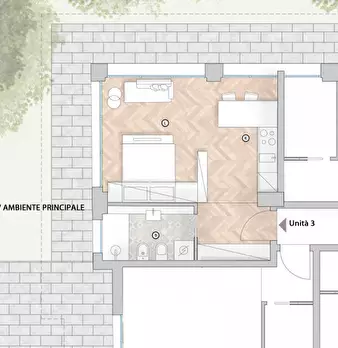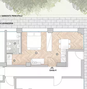 Immersa nella tranquillità del suo parco ma comoda ai servizi in quanto a 200 metri dalla Via Emilia, palazzina ristrutturata nel 2007 composta da 8 abitazioni a reddito di cui sette monolocali/bilocali con e senza soppalco oltre ad una porzione d...