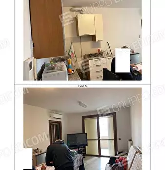 ASTA\nPiena proprietà di appartamento posto al primo piano, in contesto condominiale di recente edificazione, composto da soggiorno-pranzo con angolo cottura, balcone, disimpegno, due camere e bagno, con annessi, quali pertinenze, al piano terra u...