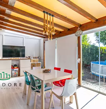 SAN GIOVANNI IN PERSICETO - LE BUDRIE- in contesto residenziale e silenzioso, circondato dal verde ma al contempo comodo a tutti i principali collegamenti autostradali proponiamo elegante porzione di villa di testa in pietra vista disposta su due...