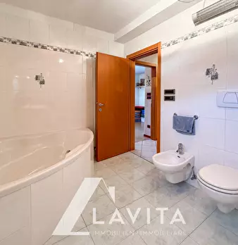 Nr.Rif: J237 A pochi passi dal centro di Neumarkt si trova questo spazioso appartamento composto da soggiorno con stufa in maiolica, cucina separata, quattro camere da letto, tre bagni, tre logge e un balcone. Completano la proprietà una grande s...