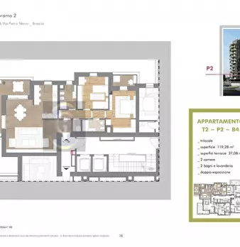 Brescia, limitrofe al centro trilocale nel nuovo complesso residenziale Torri Panorama. La tipologia B4 è disponibile al secondo piano con esposizione Nord / Ovest, l'appartamento è così suddiviso: ampio soggiorno con zona cucina e accesso alla m...