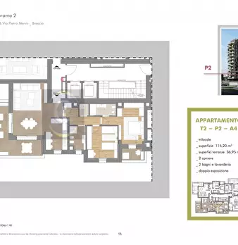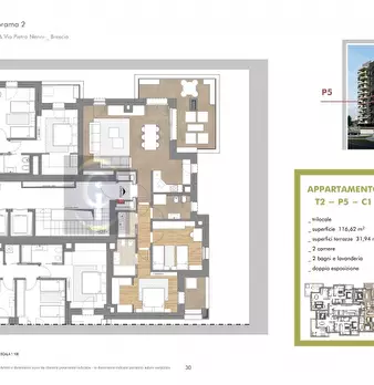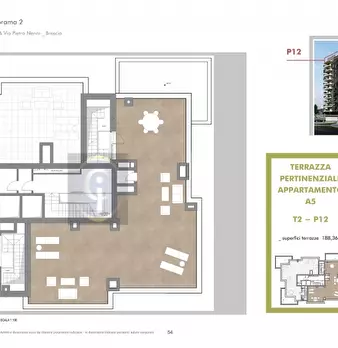 Brescia limitrofe al centro, in costruzione trilocale con panoramica terrazza al primo piano. Tipologia B4: Esposizione Nord / Ovest, entrando dalla porta d'ingresso si trova un' ampio soggiorno con cucina abitabile e accesso alla meravigliosa te...