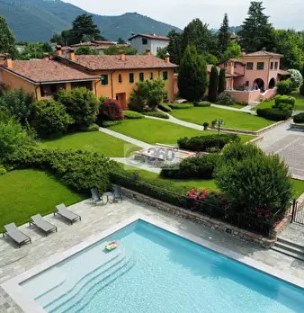 GUSSAGO - POMARO L'elegante villa disposta su due livelli oltre interrato è ubicata all'interno della "Corte la Santissima", uno dei più prestigiosi residence di Gussago. Insieme al verde ed ai vigneti circostanti, l'ampio parco condominiale nel...