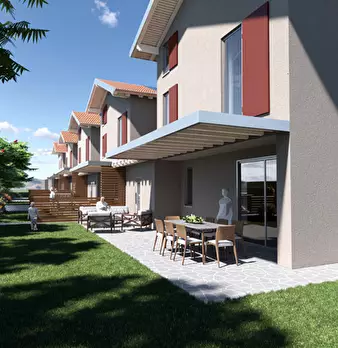 In posizione tranquilla e riservata nel comune di Ome,proponiamo in vendita questa bella villetta a schiera porzione centrale. La casa è inserita in un contesto ben curato di recente costruzione. Al piano terra un giardinetto d'ingresso indipende...