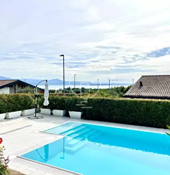 A Padenghe sul Garda, inserita all'interno di un contesto residenziale di sole Ville singole, proponiamo Villa unifamiliare di recente costruzione con piscina privata e vista lago. La proprietà si sviluppa su due piani fuori terra più un interrat...