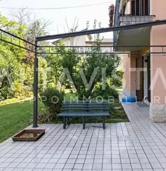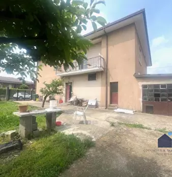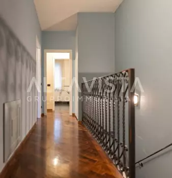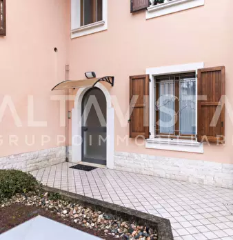 Elegante villa bifamiliare in zona riservata e comoda al centro del paese. Soluzione abitativa quadrilocale al piano rialzato dalle metrature introvabili composta da accogliente ingresso, luminoso e ampio soggiorno con pavimentazione in marmo, cuc...