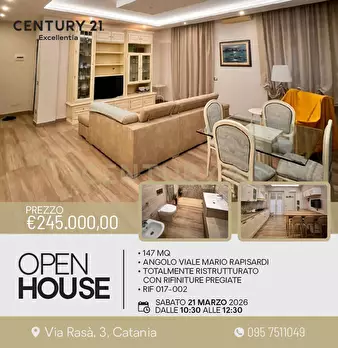 OPENHOUSE SABATO 21 MARZO 2026 DALLE 10:30 ALLE 12:30.In vendita – Elegante 5 vani ristrutturato a Catania, Via Rasá 3Nel cuore di Catania proponiamo in vendita un raffinato appartamento di 147 mq, 5 vani totalmente ristrutturato, situato al quart...