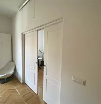 In condominio medio-signorile , situato in zona di pregio nelle immediate vicinanze del centro storico. Panoramico quadrilocale di 120 mq. Ingresso, salone doppio con balcone perimetrale, cucina abitabile con balcone, due camere da letto, studio/c...