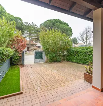 Lido degli Estensi, bella villetta a schiera, di tipo moderno, 3 camere da letto, 2 bagni, giardino: disposta Cielo terra, su due livelli; al piano terra: giardino antistante con posto auto interno, bel patio coperto, soggiuorno luiminoso, angolo ...