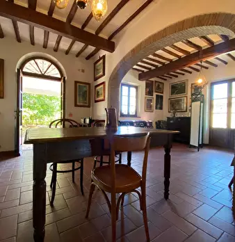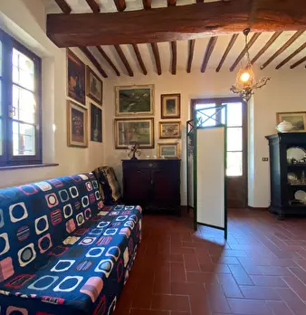 Nel suggestivo borgo di Vico d'elsa, in centro, appartamento di circa 95 mq. + garage, in ottimo stato conservativo, al piano terra con ingresso indipendente composto da: ampio salone con caminetto e cucina a vista, disimpegno, camera matrimoniale...
